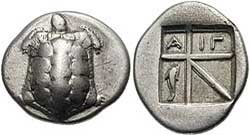Silver drachma. circa 404 BC.Discovered at the island of Aegina